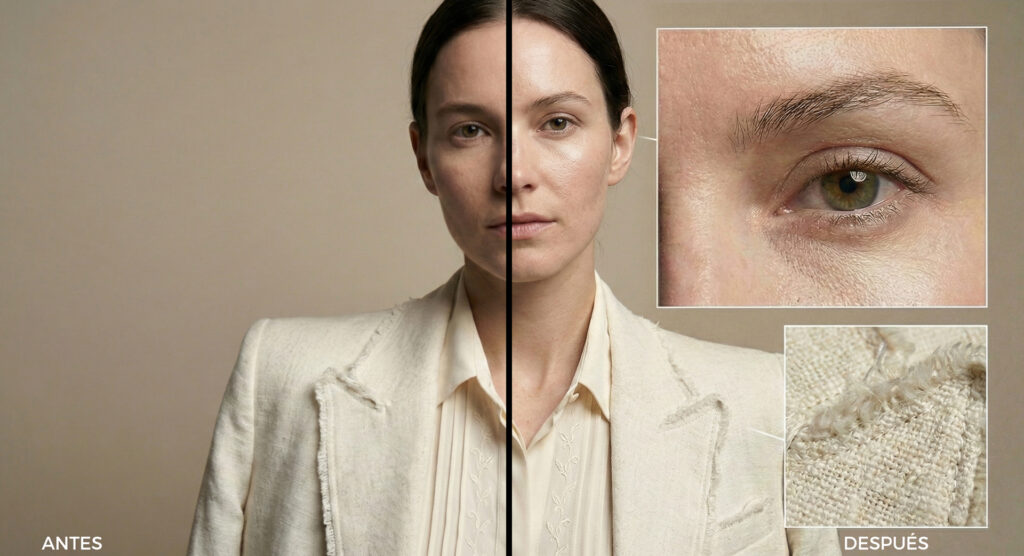 La base es una producción real con modelos y dirección artística. Cuando el proyecto lo requiere, integramos IA generativa para extender escenarios, crear planos imposibles o producir piezas nativas para redes sociales, manteniendo coherencia visual con la campaña original.